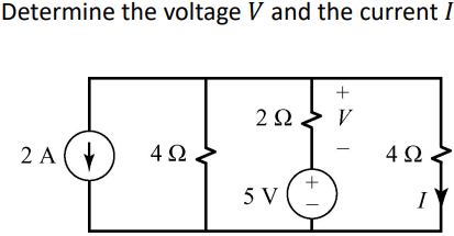 Ans: V = $-\frac{9}{2}V$ and $\frac{1}{8}A$